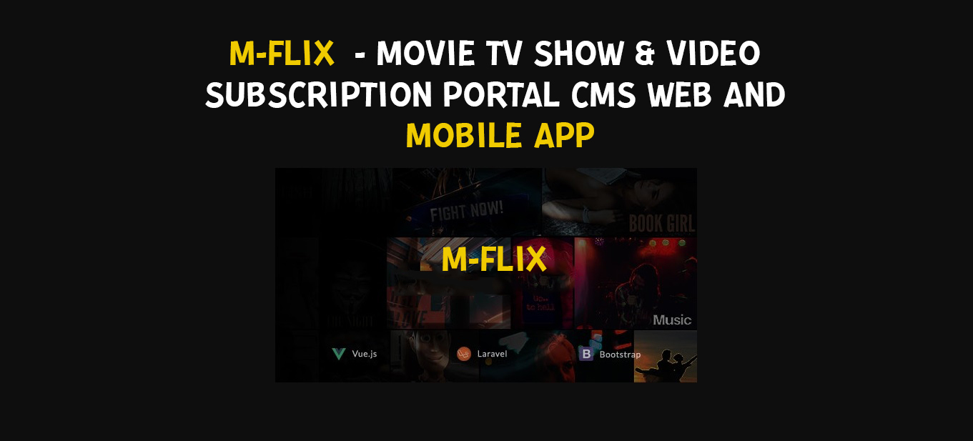 M-FLIX – Movie Tv Show & Video Subscription Portal Cms is built for movie show, tv show, tv series, tv episode, movie cms, movie streaming, php video script, video cms, video membership, video portal, video script, video subscription platform, video website, magazine, vimeo, youtube etc.