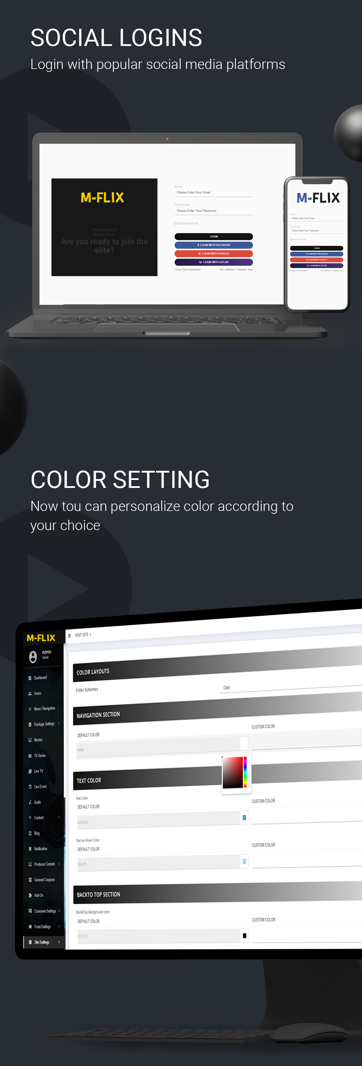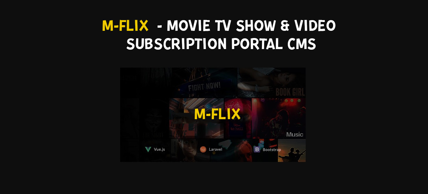 M-FLIX – Movie Tv Show & Video Subscription Portal Cms is built for movie show, tv show, tv series, tv episode, movie cms, movie streaming, php video script, video cms, video membership, video portal, video script, video subscription platform, video website, magazine, vimeo, youtube etc.